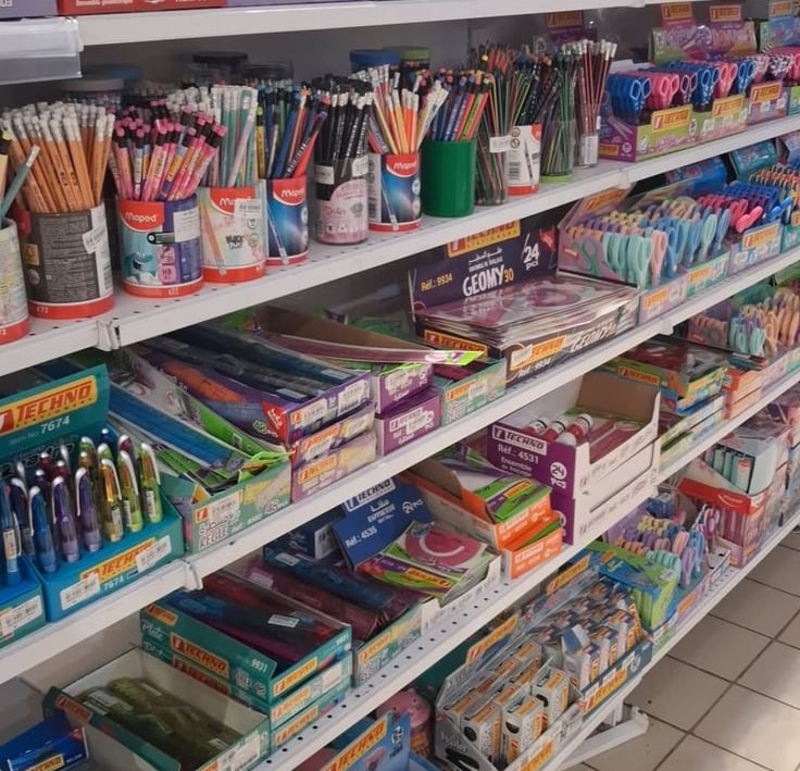 Notebooks, pens, art materials tailored for schools.